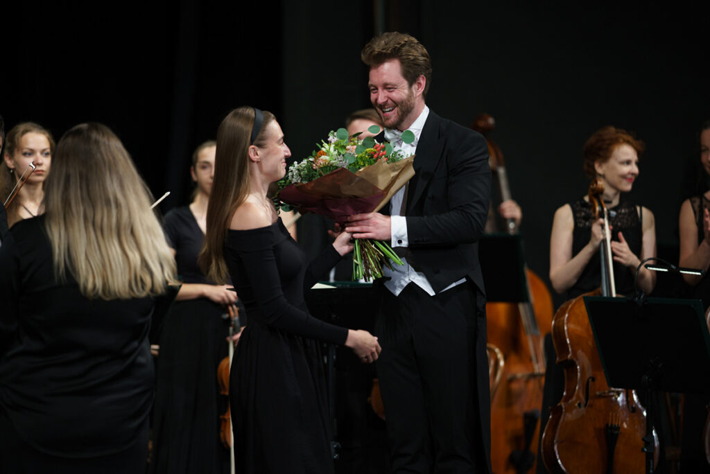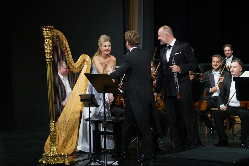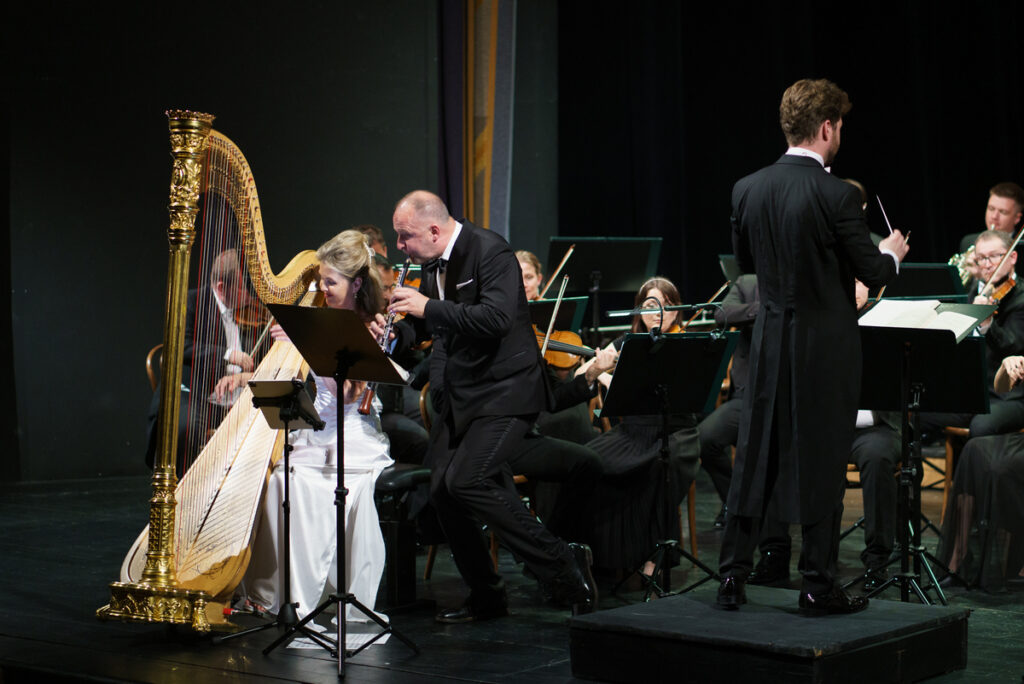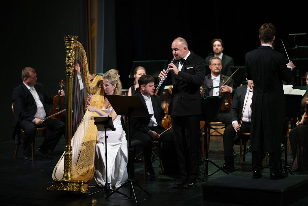 Naopak Koncert pro flétnu, harfu a orchestr C dur, KV 299 Wolfganga Amadea Mozarta byl jednoznačným vrcholem večera – interpretačně, emocionálně i dramaturgicky. Dvojice sólistů – hobojista Vilém Veverka (v transkripci flétnového partu) a harfistka Kateřina Englichová – přinesla do večera přesně to, co definovalo jeho podtitul: virtuozitu jako svobodu.