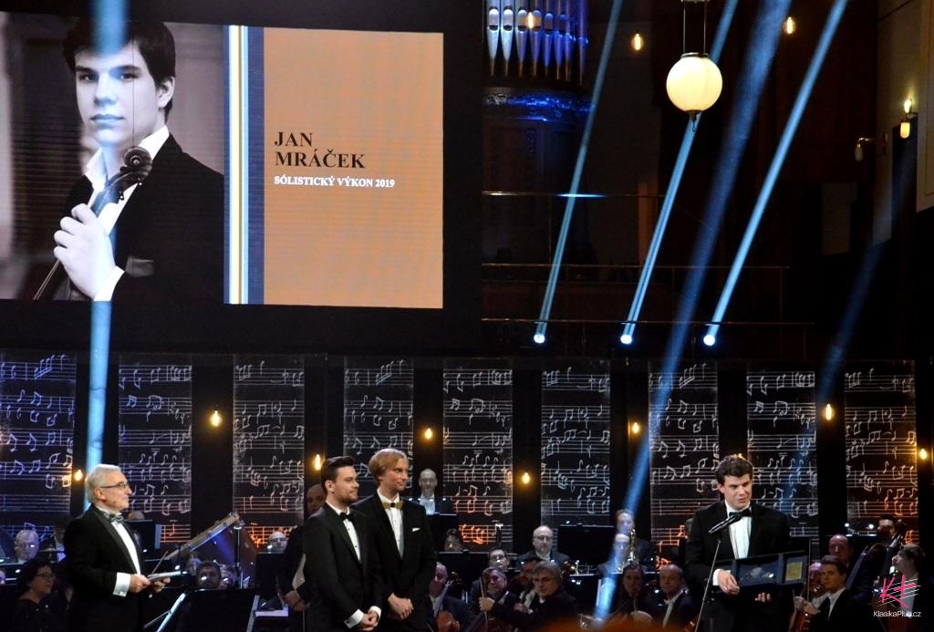 Cenu za sólistický výkon obdržel houslista Jan Mráček, navržený za provedení Prokofjevova Koncertu D dur s Českou filharmonií a Petrem Altrichterem. Mráček je jedním z koncertních mistrů České filharmonie a výrazným sólistou, je nositelem první ceny z Mezinárodní houslové soutěže Fritze Kreislera ve Vídni v roce 2014. Nominováni s ním jako další byli klavírista Martin Kasík a klarinetista Irvin Venyš.