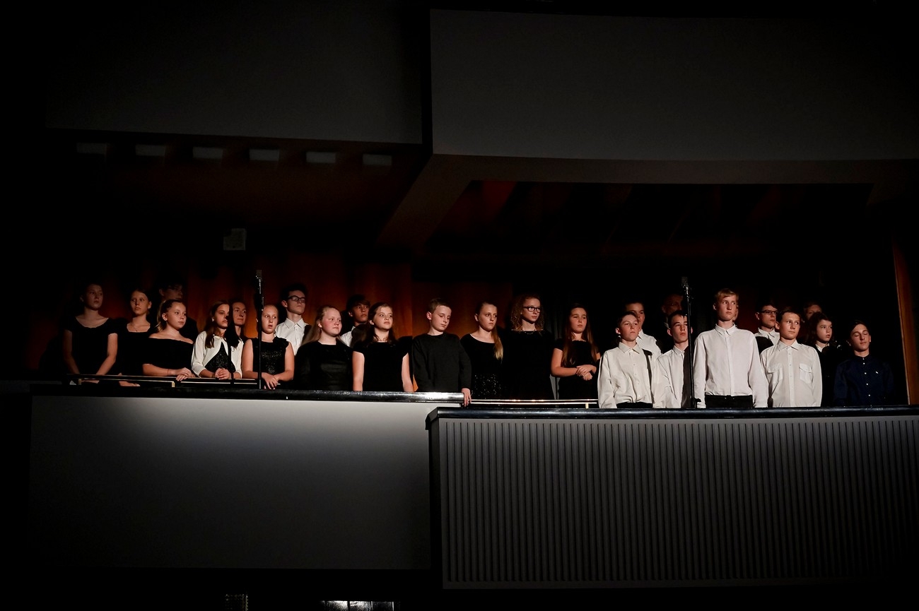 A poté přišla na scénu pěvkyně Lucie Hájková, která spolu s dětmi z waldorfské školy (pro ty, kteří to nevědí: tato škola pomáhá dětem k harmonickému rozvoji mimo jiné zpěvem a hudbou) přednesla závěrečnou scénu ze Smetanovy Libuše. Ale – jak zdůraznil řečník na pódiu – „protože jsme disciplinovaní, nebudeme zpívat, budeme recitovat“.