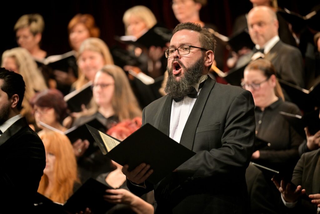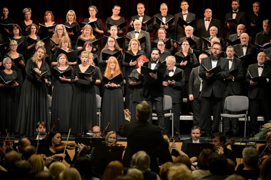 Teď již k samotnému čtvrtečnímu koncertu. Pro uvedení Requiem d moll, K. 626 Wolfganga Amadea Mozarta se z hlediska dramaturgie nabízí počátek listopadu spojený s Památkou zesnulých jako jeden z nejvhodnějších termínů. Člověk touhle dobou myslí více než kdy jindy na ty, kteří s námi již nejsou. Mozartovo poslední mistrovské dílo, kus příznačně nedokončený, spojující v necelé hodince vybrané texty mešního ordinária s úchvatnými hudebními myšlenkami geniálního skladatele, překypující lidskostí i dotyky s absolutnem, se však dá poslouchat kdykoli – a pokaždé v něm lze objevit něco nového, stačí jen se do té krásy ponořit a vnímat. Publikum ve Dvoře Králové tak učinilo se vší vážností a respektem. Pod vedením dirigenta Zdeňka Klaudy se mu dostalo pečlivě připraveného, vyváženého a citlivě gradujícího provedení. Marná sláva, být přítomen takřka každodennímu divadelnímu provozu na první české scéně je škola k nezaplacení. Pravda, Hankův dům nesplňuje akustické parametry prvotřídní koncertní síně a vzhledem k tomu, že orchestr musel být vzhledem k šesti desítkám členů dvou spojených sborů, přítomných na pódiu, usazen bezprostředně před posluchače v jedné s rovině s nimi, jeho zvuk byl pěveckým uskupením v některých pasážích silně překrýván. Když však zazněl naplno, kupříkladu v části Benedictus, neměl autor těchto řádek, nacházející se na kraji 13. řady, důvod k pochybnostem, že hráči Komorní filharmonie Pardubice mají Mozarta, kmenového autora svého repertoáru, přečteného do detailu. Lidské hlasy však tentokrát při vytváření celkového dojmu převažovaly – dlužno konstatovat, že svou okolnostmi danou roli zvládli skvěle sólisté i sbory.