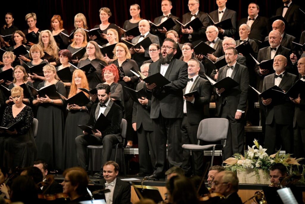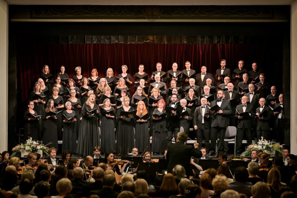 Teď již k samotnému čtvrtečnímu koncertu. Pro uvedení Requiem d moll, K. 626 Wolfganga Amadea Mozarta se z hlediska dramaturgie nabízí počátek listopadu spojený s Památkou zesnulých jako jeden z nejvhodnějších termínů. Člověk touhle dobou myslí více než kdy jindy na ty, kteří s námi již nejsou. Mozartovo poslední mistrovské dílo, kus příznačně nedokončený, spojující v necelé hodince vybrané texty mešního ordinária s úchvatnými hudebními myšlenkami geniálního skladatele, překypující lidskostí i dotyky s absolutnem, se však dá poslouchat kdykoli – a pokaždé v něm lze objevit něco nového, stačí jen se do té krásy ponořit a vnímat. Publikum ve Dvoře Králové tak učinilo se vší vážností a respektem. Pod vedením dirigenta Zdeňka Klaudy se mu dostalo pečlivě připraveného, vyváženého a citlivě gradujícího provedení. Marná sláva, být přítomen takřka každodennímu divadelnímu provozu na první české scéně je škola k nezaplacení. Pravda, Hankův dům nesplňuje akustické parametry prvotřídní koncertní síně a vzhledem k tomu, že orchestr musel být vzhledem k šesti desítkám členů dvou spojených sborů, přítomných na pódiu, usazen bezprostředně před posluchače v jedné s rovině s nimi, jeho zvuk byl pěveckým uskupením v některých pasážích silně překrýván. Když však zazněl naplno, kupříkladu v části Benedictus, neměl autor těchto řádek, nacházející se na kraji 13. řady, důvod k pochybnostem, že hráči Komorní filharmonie Pardubice mají Mozarta, kmenového autora svého repertoáru, přečteného do detailu. Lidské hlasy však tentokrát při vytváření celkového dojmu převažovaly – dlužno konstatovat, že svou okolnostmi danou roli zvládli skvěle sólisté i sbory.
