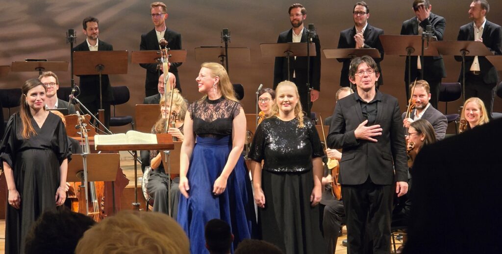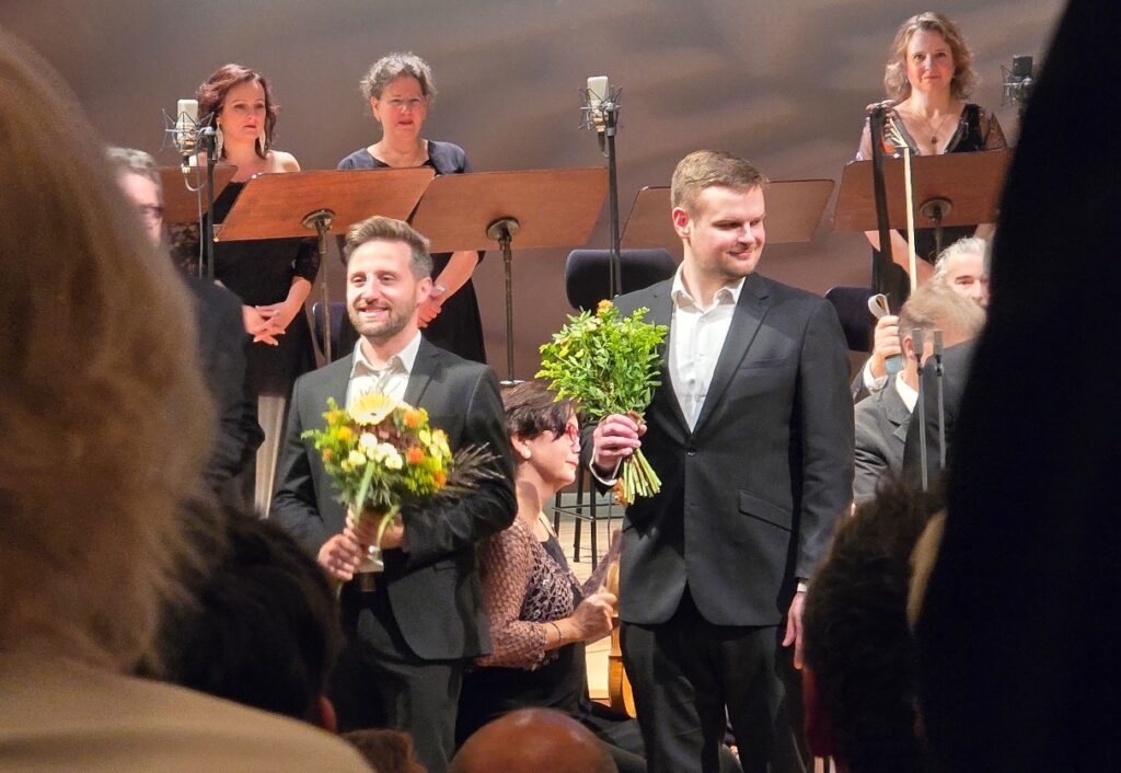 Za zmínku stojí všichni, kdo tvořili mezinárodní obsazení orchestru, od koncertního mistra Heleny Zemanové přes trumpetisty, hornisty a všechny další až po continuo a tympánistu. Jmenovitě však zasluhují vyzdvihnout sólisté večera – průzračný soprán Terezy Zimkové, lahodné, neméně skvěle ovládané hlasy Pavly Radostové a Anety Petrasové, příjemný kontratenor Gabriela Diaze Cuesty a tenor Ondřeje Holuba, měkký bas Tomáše Šelce a zvučný bas Tadeáše Hozy.