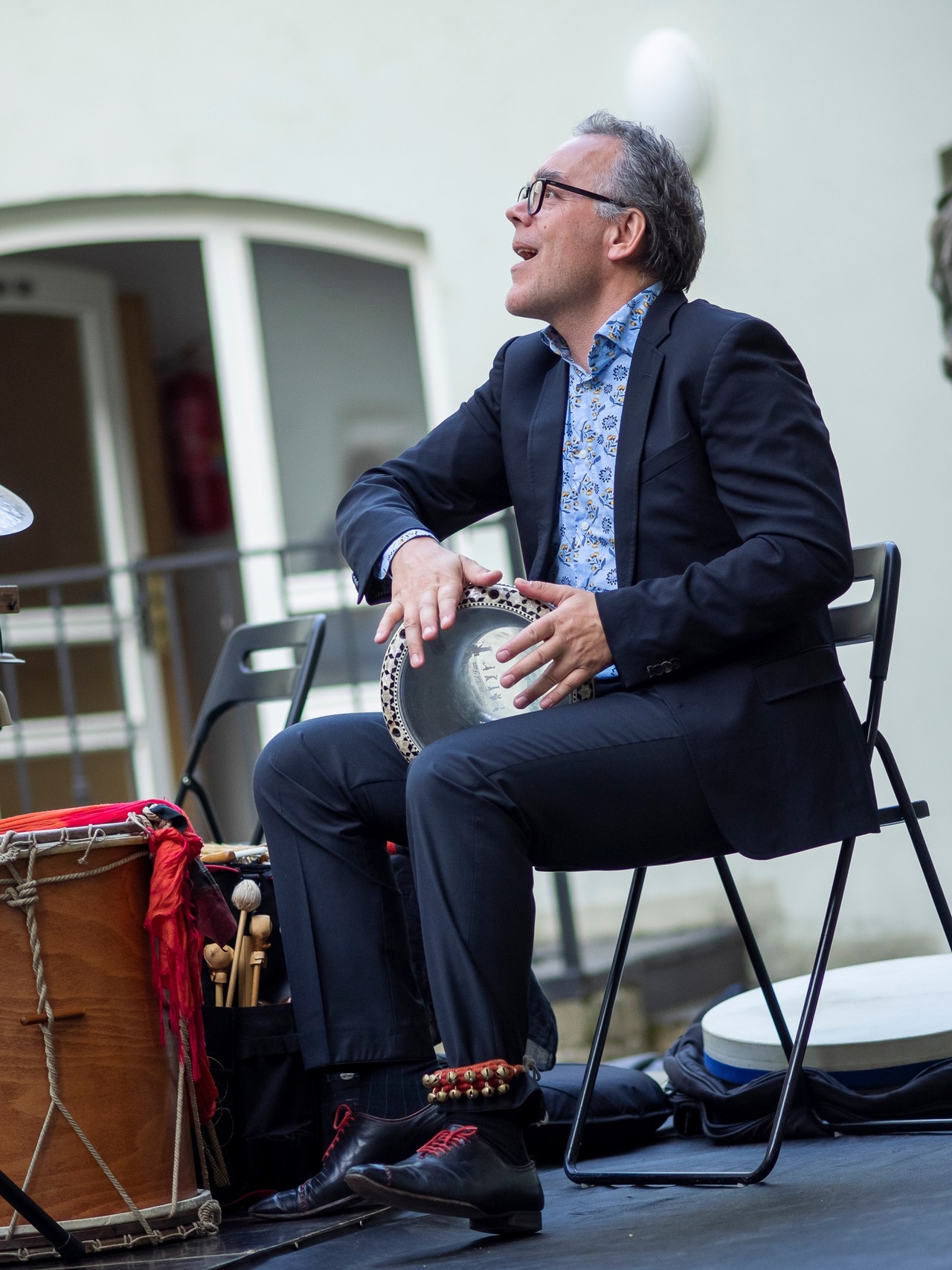 A slyšeli jsme a viděli i opravdový zápas se živly, to když brzy po začátku koncertu začaly v závanech večerního větříku poletovat hudebníkům noty. Kolíčky na prádlo pomáhaly jen omezeně, ale naštěstí to netrvalo dlouho. Pak už prostor občas opanovaly jen nehudební zvuky, jako pokřikování usínajících ptáků, a vedle toho srpek měsíce, tmavnoucí obloha a nakonec poletující netopýři. Hudba ale vítězila, až k poslednímu přídavku, kterým byla zopakovaná sefardská píseň Morena v jazyku ladino. To už asi nebylo ani vidět na noty, ale evidentně to moc nevadilo, hudba měla v uvolněném projevu veškerý potřebný výraz.