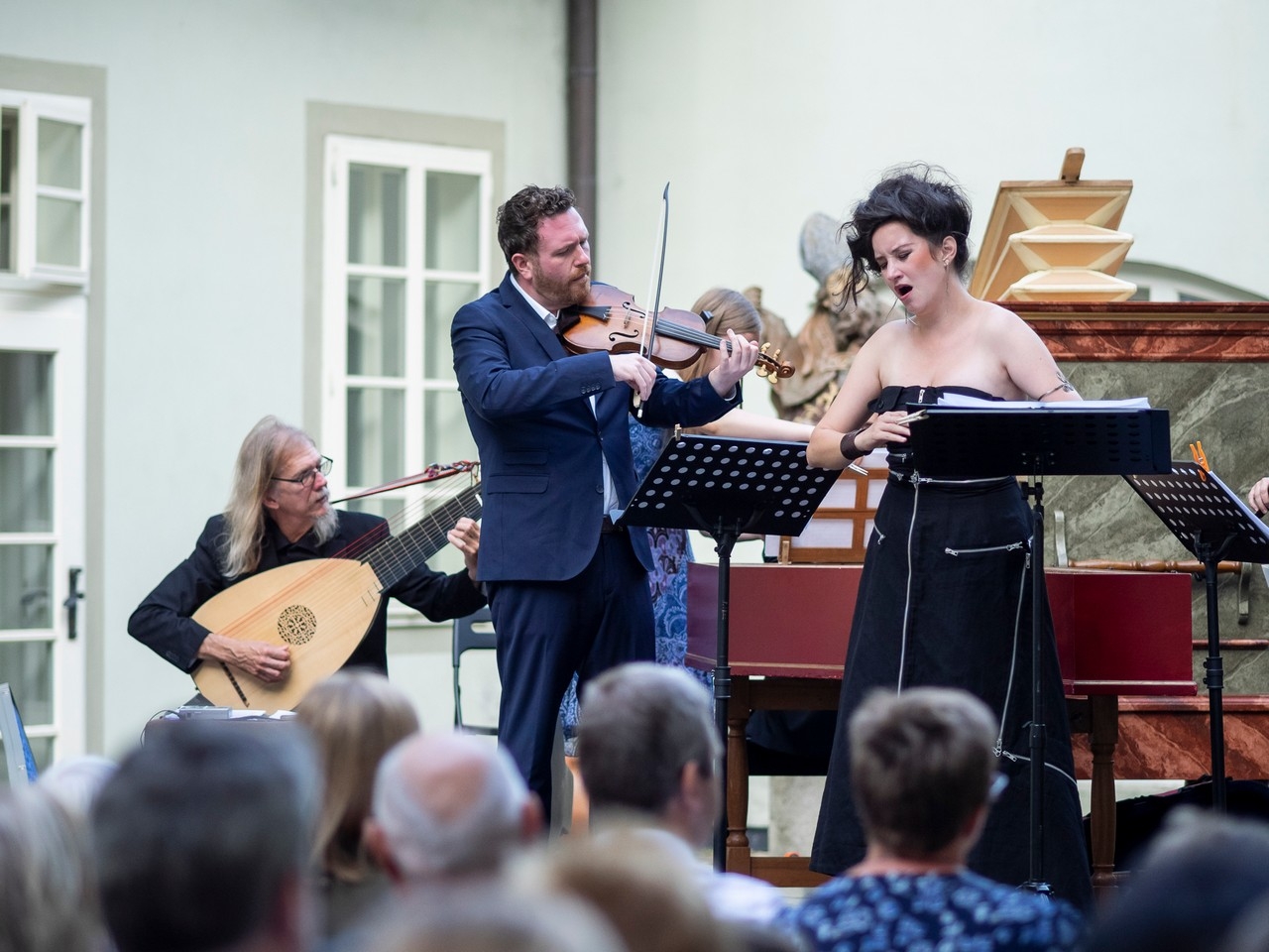 Co jsme tedy na nádvoří Althanského paláce ve Znojmě v pondělí večer slyšeli? Vesměs barokní hudbu, ale také pár nenápadných úkroků stranou ke starým lidovým písním a k Beatles a Leonardu Cohenovi a v přídavku k rockové klasice sedmdesátých let. Ve vokálně skvělé interpretaci mladé pěvkyně, která po světě exceluje ve staré hudbě, ale je ochotná si pohrát i s něčím jiným. A to vše plynule a nenásilně propojené v jeden hudební a zvukový svět vytvářený ani ne deseti muzikanty patřícími do mezinárodního sdružení dobových nástrojů La folia Barockorchester, uvolněně i zapáleně hrajícími, skvěle na sebe reagujícími a občas lehce improvizujícími. Hudební svět několika smyčcových nástrojů, zobcových fléten, fagotu, loutny, bicích, cembala a varhanního pozitivu, tedy zvuk velmi vitální, podmanivý a chytlavý, nicméně zvuk výrazně komorní, vytvářený jednotlivými osobnostmi, které společně mistrně muzicírují a uchylují se s nevinnou tváří k vědomým přešlapům za hranice striktně vymezeného světa barokní hudby.