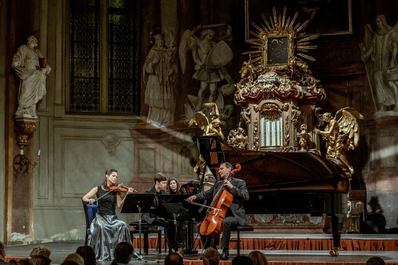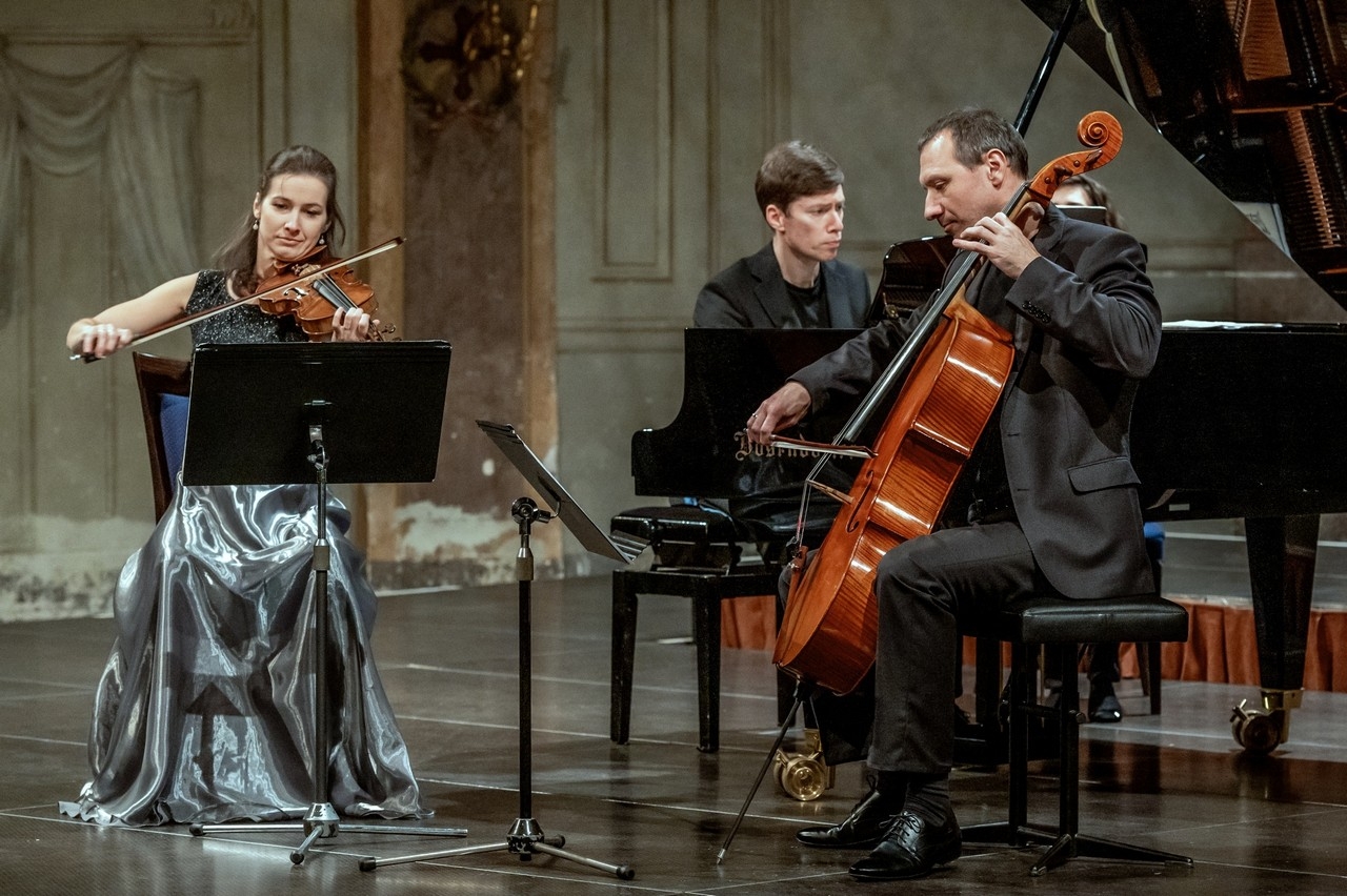 Už v optimistickom úvode Tria B dur od Ludwiga van Beethovena sme si mohli vychutnávať rozjasnené tóny huslí v rukách Petry Brabcovej; brilantnými, s ľahkosťou zahranými pasážami zas upútal Stanislav Gallin. Teleso sa v tomto diele držalo skôr elegantného, miestami až hravého vyznenia, ktoré sa k tejto pôvabnej skladbe dobre hodí. Charakter sa trochu premieňa akurát v prostrednom Adagiu. To otvára vstup violončela con espressione, ktorý pôsobil v podaní Petra Malíška veľmi vyrovnane, vrúcne, znejúc krásne plným tónom. V tretej variačnej časti sa blysla predovšetkým Petra Brabcová s precízne artikulovanými pohyblivejšími pasážami. Faktúra tejto časti celkovo stavia do popredia skôr sláčikové nástroje, klavír znel teda o čosi menej výrazne, pre dobrý zvukový výsledok ale bola táto voľba celkom logická.