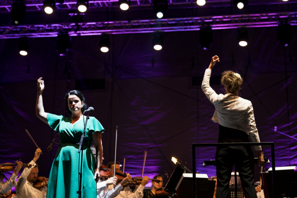 Po přestávce zaujal tišší a kultivovaný zvuk, zřejmě i zvukař pochopil, že s touto hudbou je třeba nakládat jinak, a dokázal, že to jde. Snížením decibelů nízká dynamika získala hebkost a orchestr přinesl měkké legato i kompaktní zvuk. Přesně to potřebovala Předehra ke Snu noci svatojanské, op. 21 Felixe Mendelssohna-Bartholdyho, stejně jako Intermezzo z opery Sedlák kavalír Pietra Mascagniho. Árii Leonory z prvního jednání opery Trubadúr „Tacea la notte placida” Veronika Rovná zpívala plným a barevným hlasem, opět mimo mikrofon a znělo to přirozeně. Závěrečným bodem byla hudba Antonína Dvořáka, nejprve jímavé Nocturno H dur, op. 40, kde vyzněl sólový vstup skupiny violoncell a skladba měla potřebný tah a žádoucí plynulost. Večer uzavřela árie Rusalky z prvního jednání stejnojmenné opery „Měsíčku na nebi hlubokém”. Druhá polovina večera měla to pravé letní kouzlo a obecenstvo odměnilo umělce vřelými ovacemi.