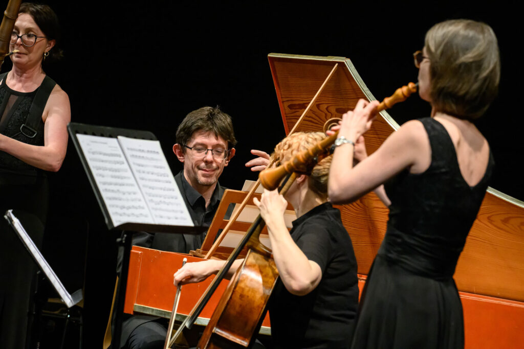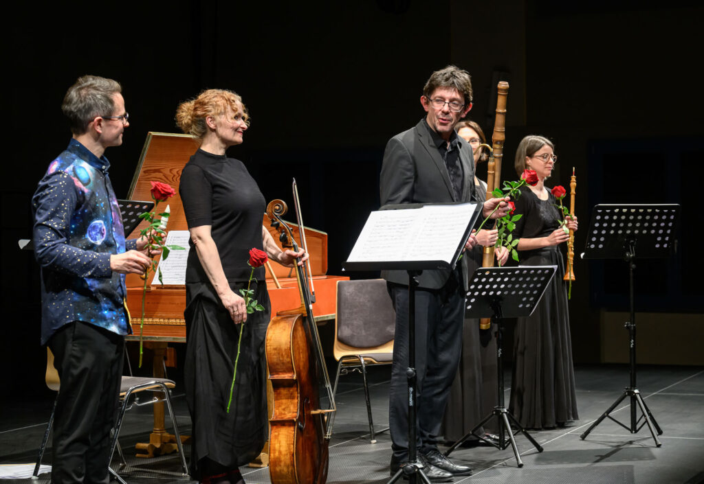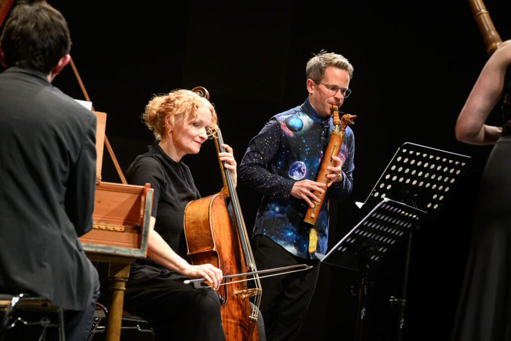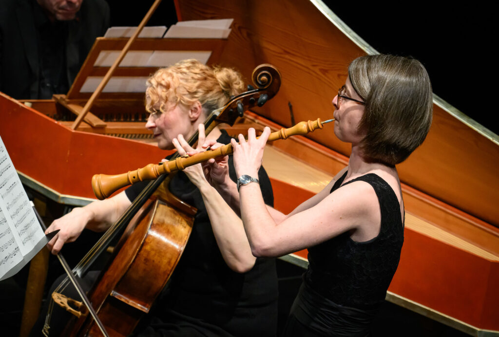 Jak už však bylo zmíněno, i ostatní dobové nástroje se dostaly ke slovu. Příjemným kontrastem se stala „gambová vložka“, tedy Árie a variace pro violu da gamba D dur gambového virtuosa Gottfrieda Fingera v podání Hany Flekové, jejímž partnerem byl, jako ostatně celý večer, za cembalem sedící a neomylně podporující Václav Luks. Fleková na toto jediné číslo vyměnila violoncello za gambu a přestože se možná mnohý posluchač zamyslel na tímto dramaturgickým vybočením, hudebně přineslo toto číslo další zvukový rozměr (navíc od nástroje, který také neslyšíme každý den). Chalumeau chybělo také v Sonátě pana Händela pro hoboj, fagot a basso continuo F dur, o jejímž autorství se vedou spory. Přestože zde mírné händelovské názvuky možná vnímáme, dílo je silně zakotveno v dobovém italském stylu – jedinou možností tedy je, že by se jednalo o rané dílo tohoto barokního velikána. Prim hrál tentokrát hoboj v podání Kathariny Andres, která ukázala dokonale zvládnutou techniku v rychlých pasážích; v kantiléně se zase dostala až k limitům svého nástroje.